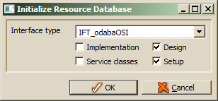 Several project or application resources are copied from the system resource database (ode.dev). When opening the database with an ODE tool the first time, resources are copied according to the requirements of the selected application. When opening another tool later on, the resource database has to be reinitialized by activating the Services/Initialize Resource DB menu item in the application menu. Than, a dialog pops up, where you might select the following options: