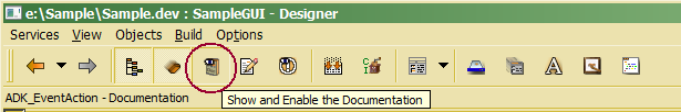 Documentation may be activated by clicking the documentation button in the toolbar or selecting Documentation from the View sub menu in the main menu.