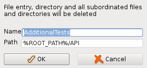 In order to obtain a warning dialog before deleting each selected tree entry, the option variable ASK_BEFORE_DELETE has to be set to true (TestBrowser ini- or configuration file). Than, a deletion confirmation is required by popping up a deletion dialog.