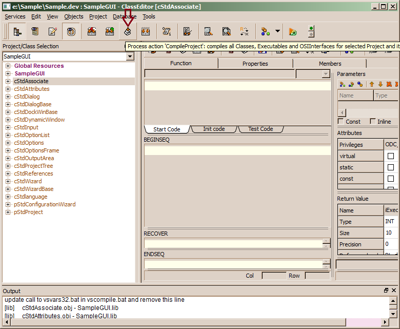 After creating external resources, one may compile the project by selecting the "Compile all classes" action: