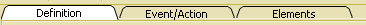 The event action control edit form provides three tabs for providing text definitions and display options (Definition), defining the action to be executed (Action) and for defining subordinated elements.