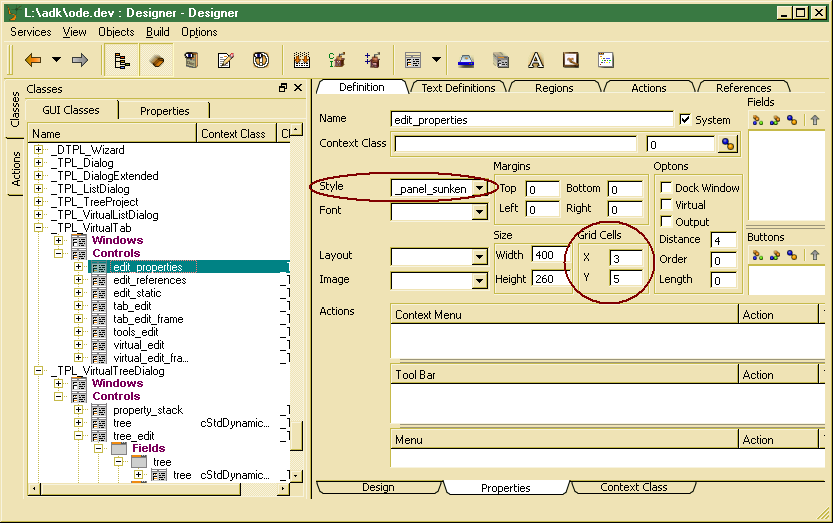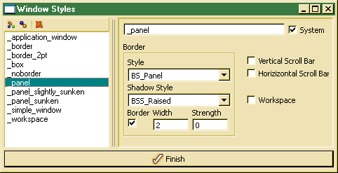 Window frame styles may be defined as window styles in the ODE Designer. Window frame styles mainly define the type of the windows frame and scroll bars